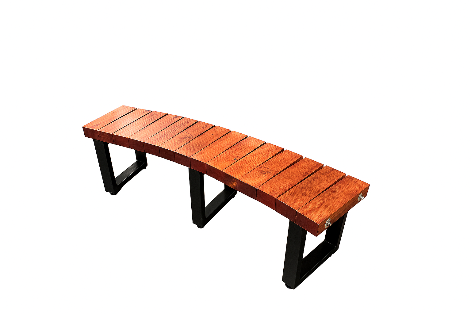 FORRGED Arc Bench – Sculpted Simplicity in Steel and Wood Curved with purpose, the FORRGED Arc Bench is designed to invite. Crafted with precision-bent powder-coated steel legs and fitted with richly stained solid hardwood slats, this bench introduces gentle movement to any environment — creating a sense of flow and intention. Its minimalist design, paired with an elegant radius, makes it ideal for landscaped outdoor areas, waiting rooms, or contemporary foyers where a straight bench just won’t do. Key Features: