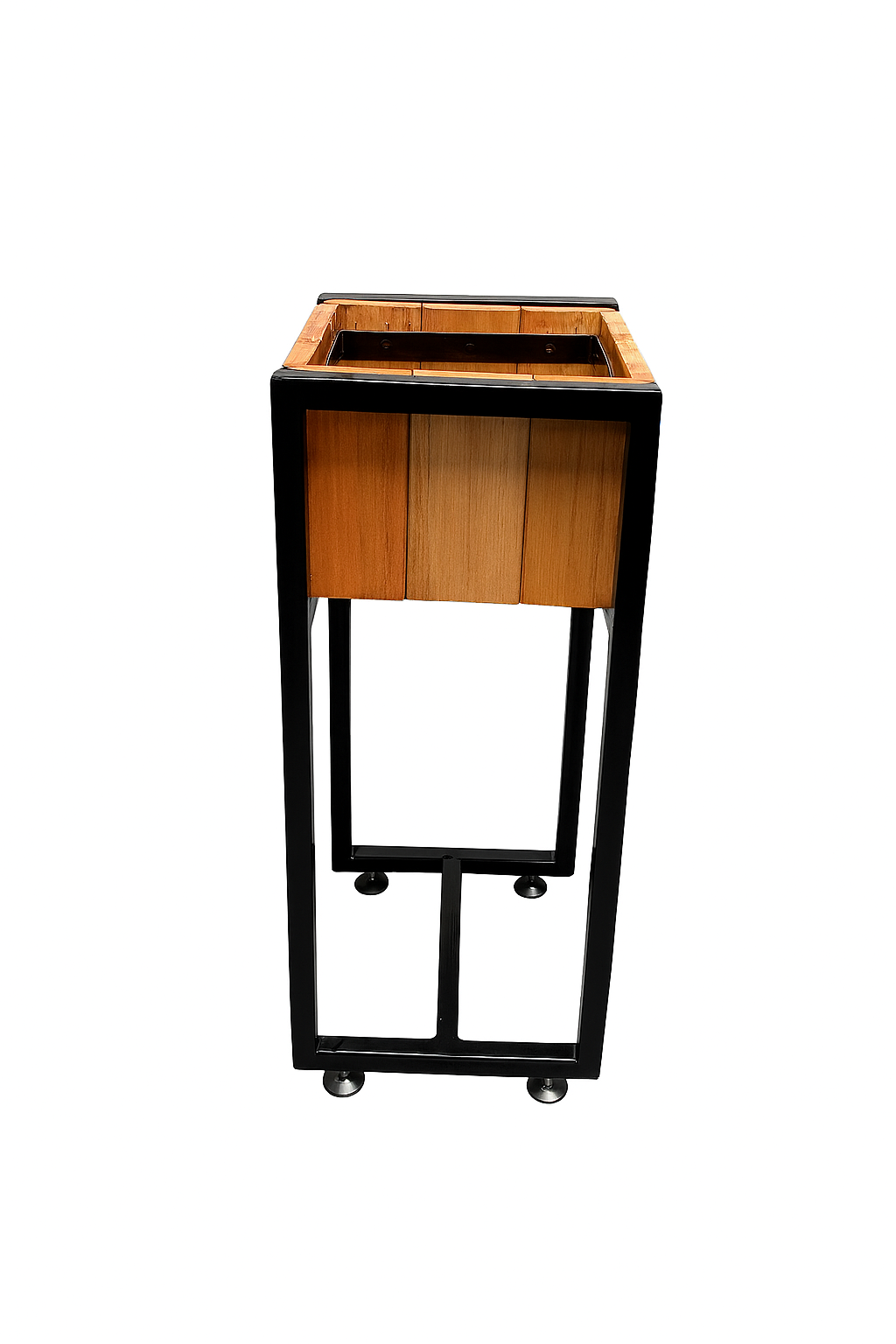 The FORRGED Pot Plant Holder is where bold design meets natural simplicity. Crafted with a sleek black steel frame and rich wooden saligna paneling, this elevated planter adds structure and modern charm to any space. Built for strength and style, it's perfect for showcasing your favourite indoor or sheltered outdoor plants.