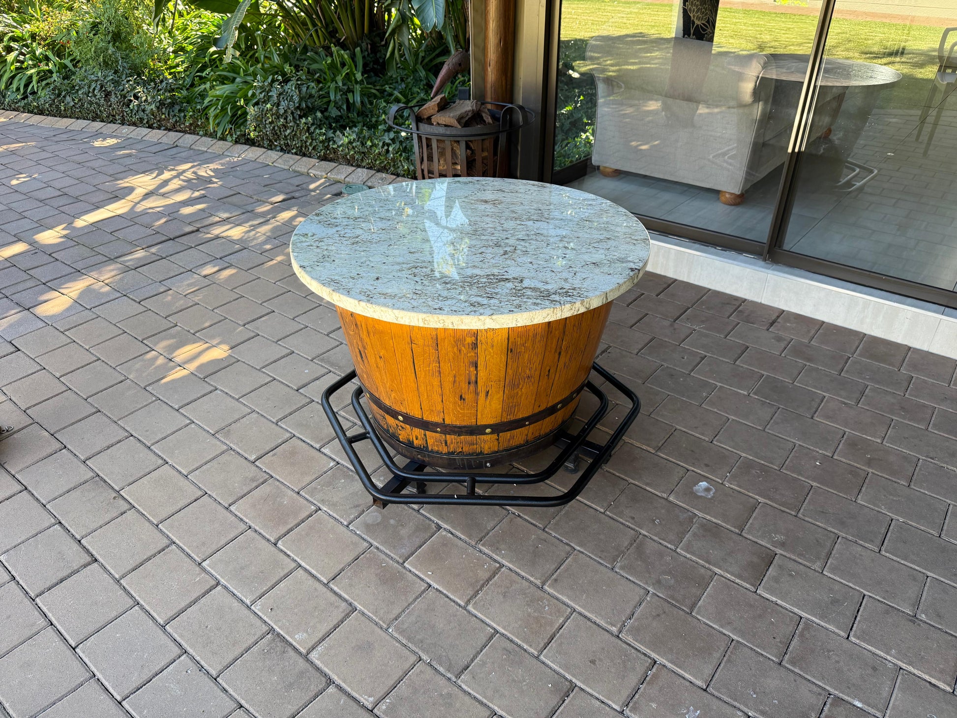 FORRGED Wine Barrel Table – Artisan Craft with a Vintage Edge Old world charm meets modern function in the FORRGED Wine Barrel Table — a bold centrepiece handcrafted from a genuine reclaimed wine barrel, topped with an elegant granite top and anchored by a custom steel base. Designed to stand out, this piece brings authentic vineyard character into any space while offering durability, mobility, and timeless appeal. Perfect for entertainment areas, bar patios, or rustic-modern interiors, this table is as much a conversation piece as it is a functional showstopper.